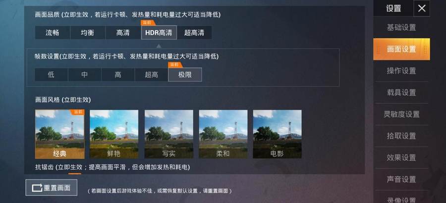 像《和平精英》这种对手机性能要求比较高的游戏也能轻松应对,HDR高清+极限帧率的画质设置下,游戏全程同样可以维持在60帧左右,即使是开车、对战等场景画面流畅度也很稳定,不会出现突然的掉帧影响体验。并且因为拥有240Hz屏幕采样率,游戏过程中的点击、拖动等操作响应都非常迅速。