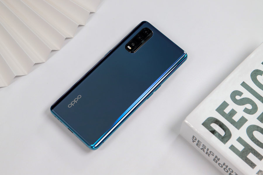 Find X2在外观整体布局跟Find X2 Pro版非常接近,主要区别在于背面相机模组。Find X2目前有陶瓷和玻璃两种机身材质,评测机为碧波版配色,也就是玻璃材质。背面加入了丰富的细节小纹理,非常有质感。